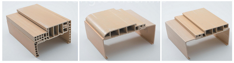 पीवीसी प्लास्टिक + 10-30% लकड़ी पाउडर + सुरक्षात्मक फिल्म कोटिंग + सील-किनारे उपचार |