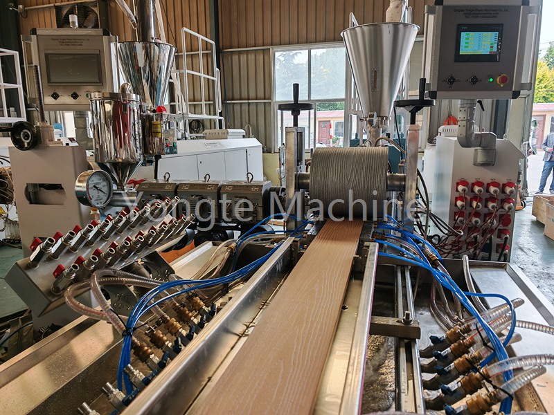 योंगटे डब्ल्यूपीसी एक्सट्रूडर मशीन, मानक डब्ल्यूपीसी एक्सट्रूज़न लाइनों की तुलना में आउटपुट में 15-20% की वृद्धि हुई। यह वास्तव में इस संपूर्ण उत्पादन लाइन सेटअप में मुख्य उपकरण है। इस लाइन में उच्च दक्षता वाले शंक्वाकार ट्विन-स्क्रू एक्सट्रूडर, डब्ल्यूपीसी डेकिंग मोल्ड, कैलिब्रेशन और कूलिंग टेबल, ट्रैक्शन और कटिंग मशीन, स्वचालित इलेक्ट्रिक कंट्रोल सिस्टम शामिल हैं।
